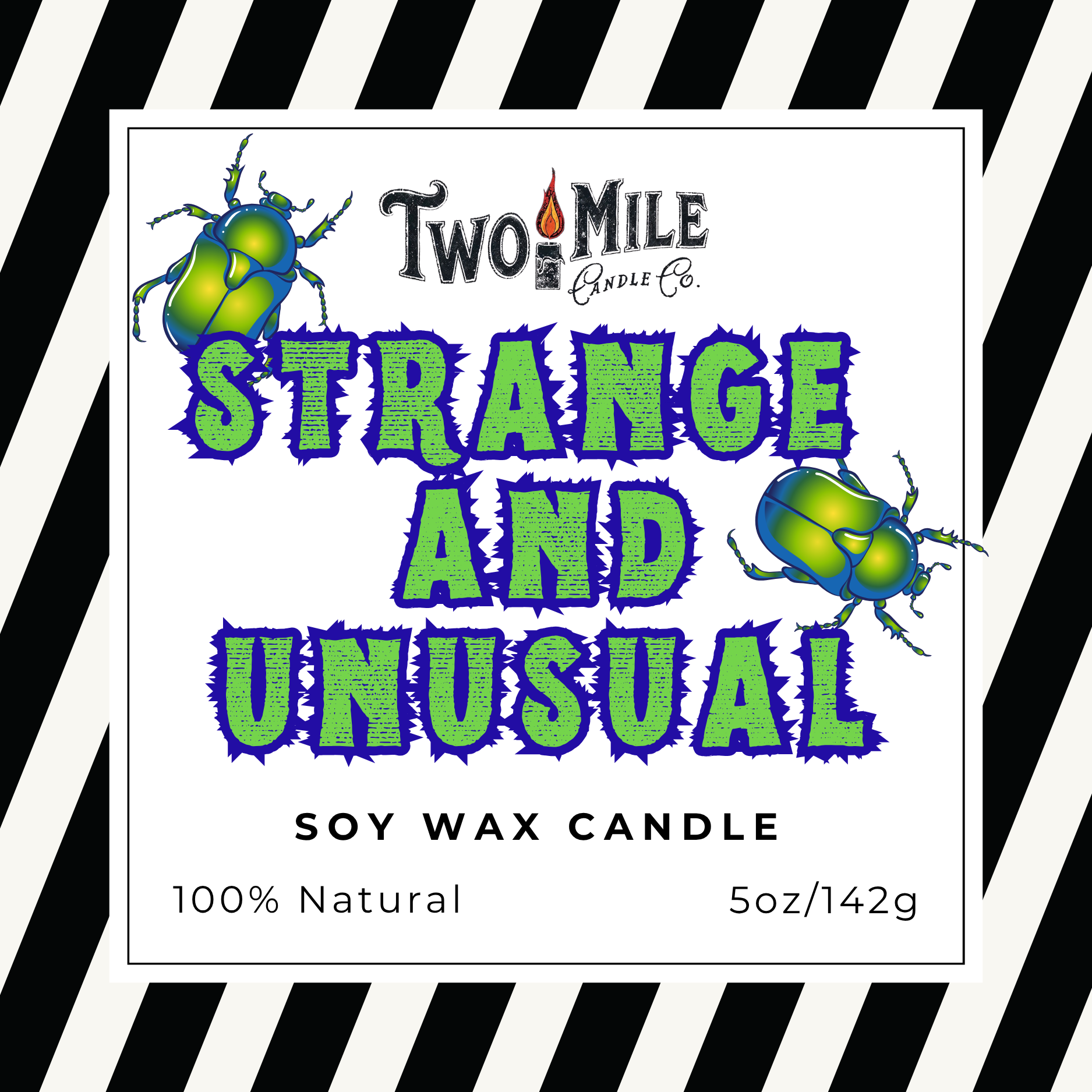 'Strange and Unusual' is an inspiring blend of the truly unique. With notes of patchouli, eucalyptus, a whisper of leather straight from the Book of the Recently Deceased, and a hint of freshly dug graveyard dirt, this candle is all about embracing the unusual. Light this candle as a celebration of everything that makes you wonderfully strange and unusual!